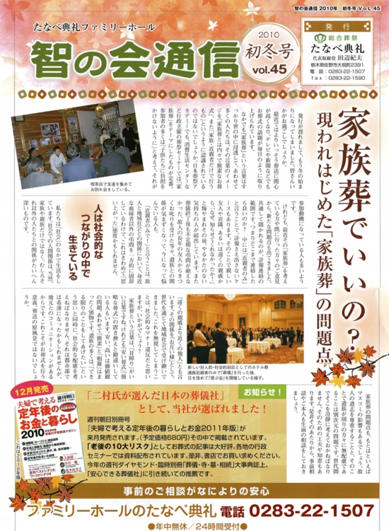「たなべ典礼 智の会」はもしもの時に供えて、皆様に安心とご満足のご葬儀を執り行って頂くための、心の拠り所となるきめ細かいサークル活動を行います。